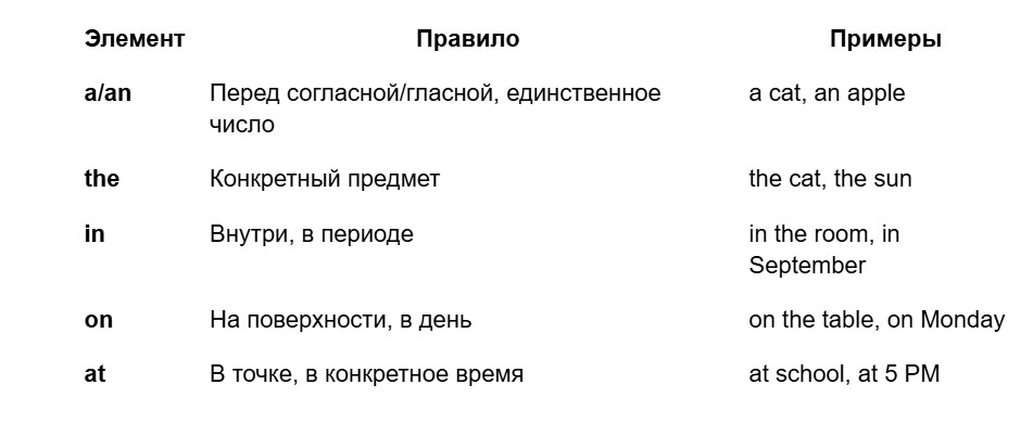 Добавление артиклей (a/an, the) и предлогов (in/on/at)